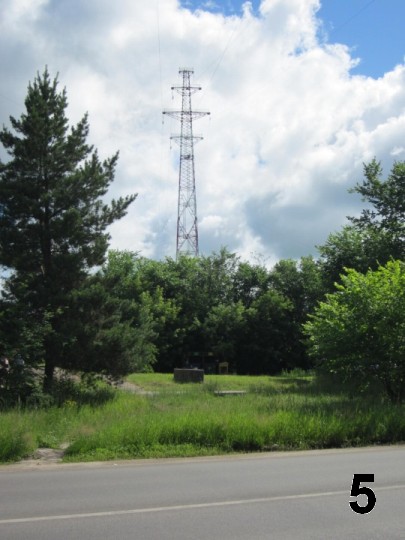 3) Пара фотографий (второй снимок выполнен при развороте на 180 градусов относительно первого). Недалеко от старого кубенцевского кладбища автотрассу (улицу Дзержинского) пересекает ЛЭП, опоры которой мы и видим на этих фото. За левой границей кадра первого снимка (не более чем в двадцати метрах) расположен дом №159 – это самое близкое строение к точке съемки. Число: 159.